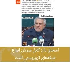 صحبت‌های اسحاق دار وزیر خارجه رژیم نظامی دارالکفر طاری پاکستان دربارهٔ TTP دروغ محض است
