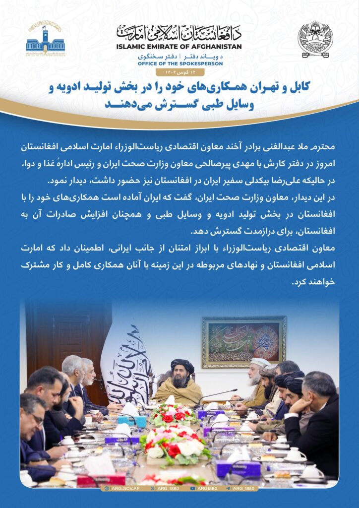 امارت اسلامی افغانستان اصل مشکل را فهمیده و در بخشهای سرمایهگذاری و تحول اقتصادی، تصامیم خوب و درخورِ ستایش اتخاذ نموده است وانشاءالله که بتواند در مدت زمانِ کم، افغانستان را به شکوفایی و ترقی کامل برساند.